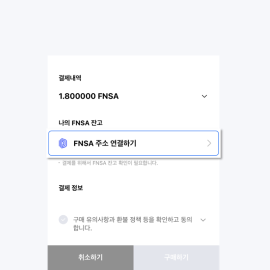 2) 결제 페이지에서 ‘FNSA 주소 연결하기’를 누르고 FNSA 지갑을 연결해 주세요.
