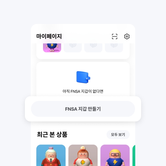 2) 마이 페이지에서 “FNSA 지갑 만들기”를 선택하고 신규 지갑을 생성해 주세요. *신규 지갑 생성 시 백업 구문을 꼭 잘 보관해 주세요.