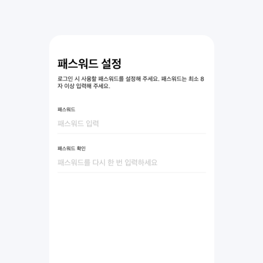 3) FNSA 지갑 로그인 시에 사용할 8자리 이상의 패스워드를 설정하면 완료!